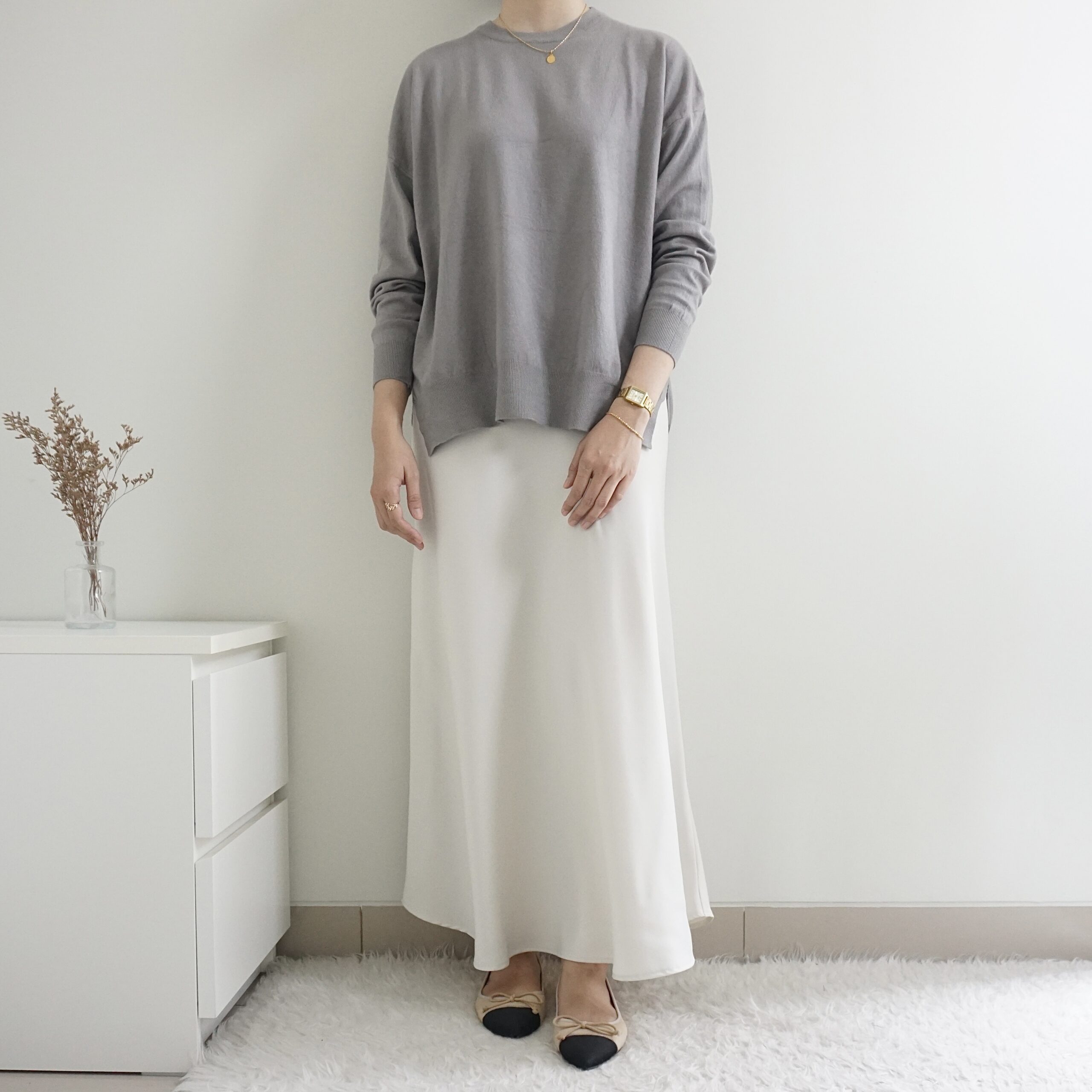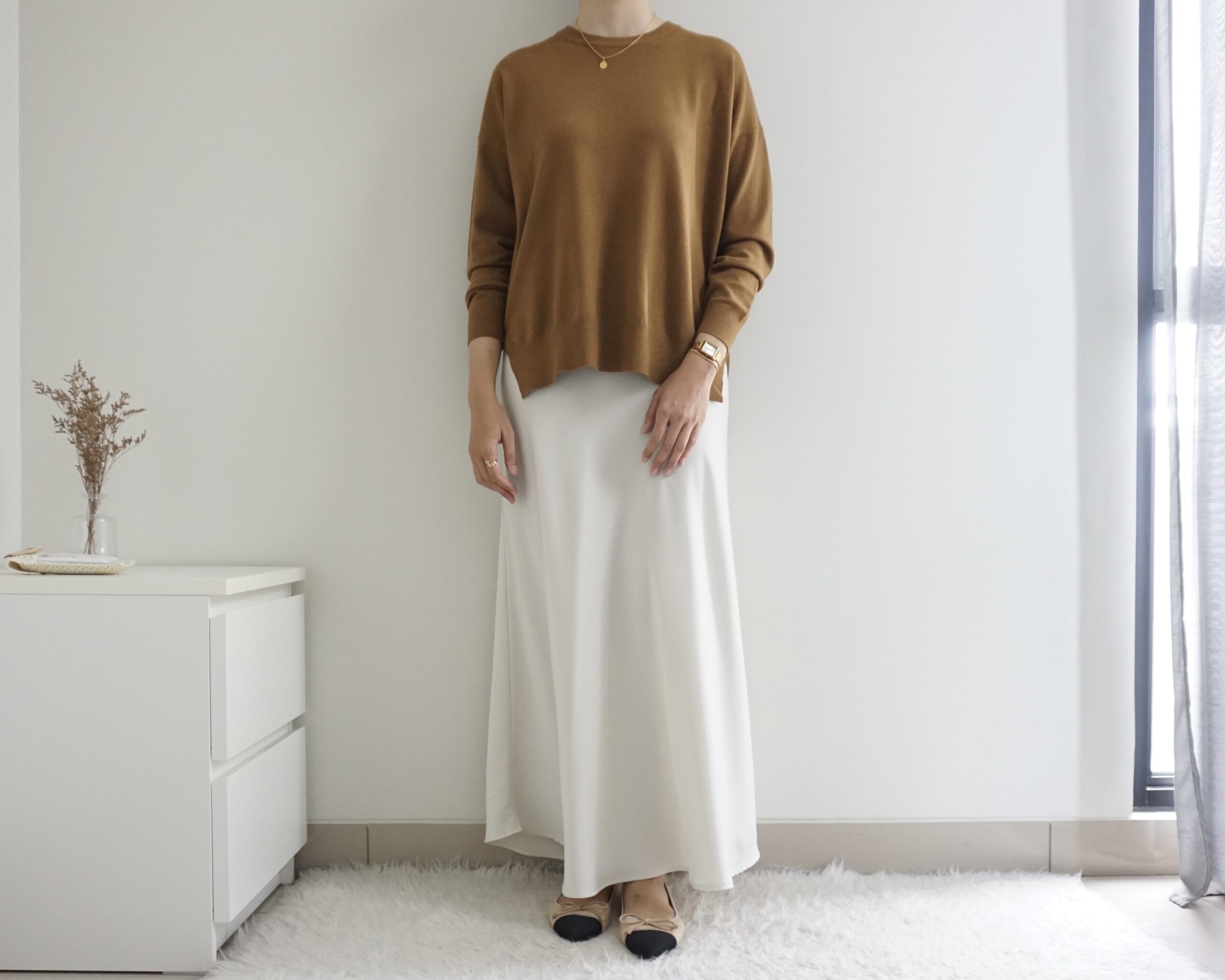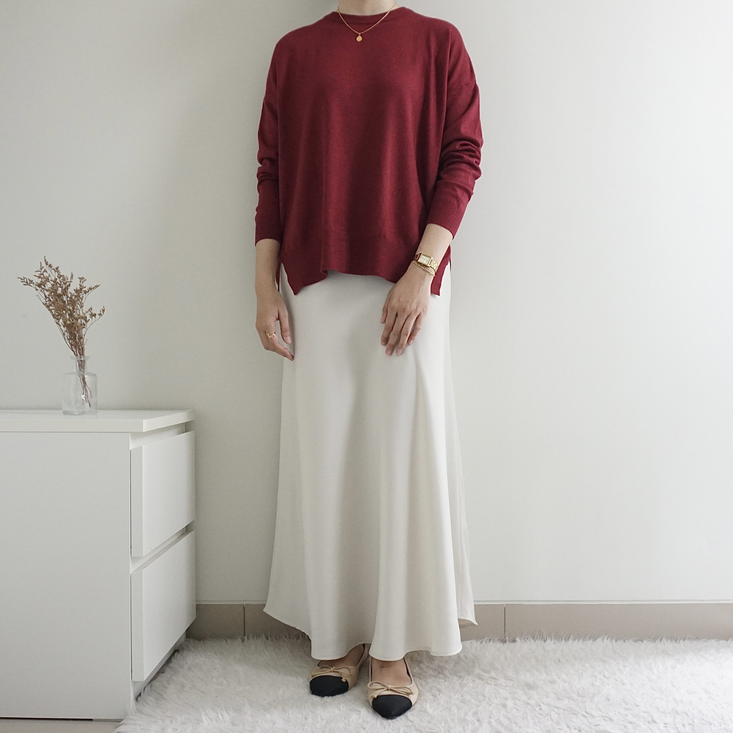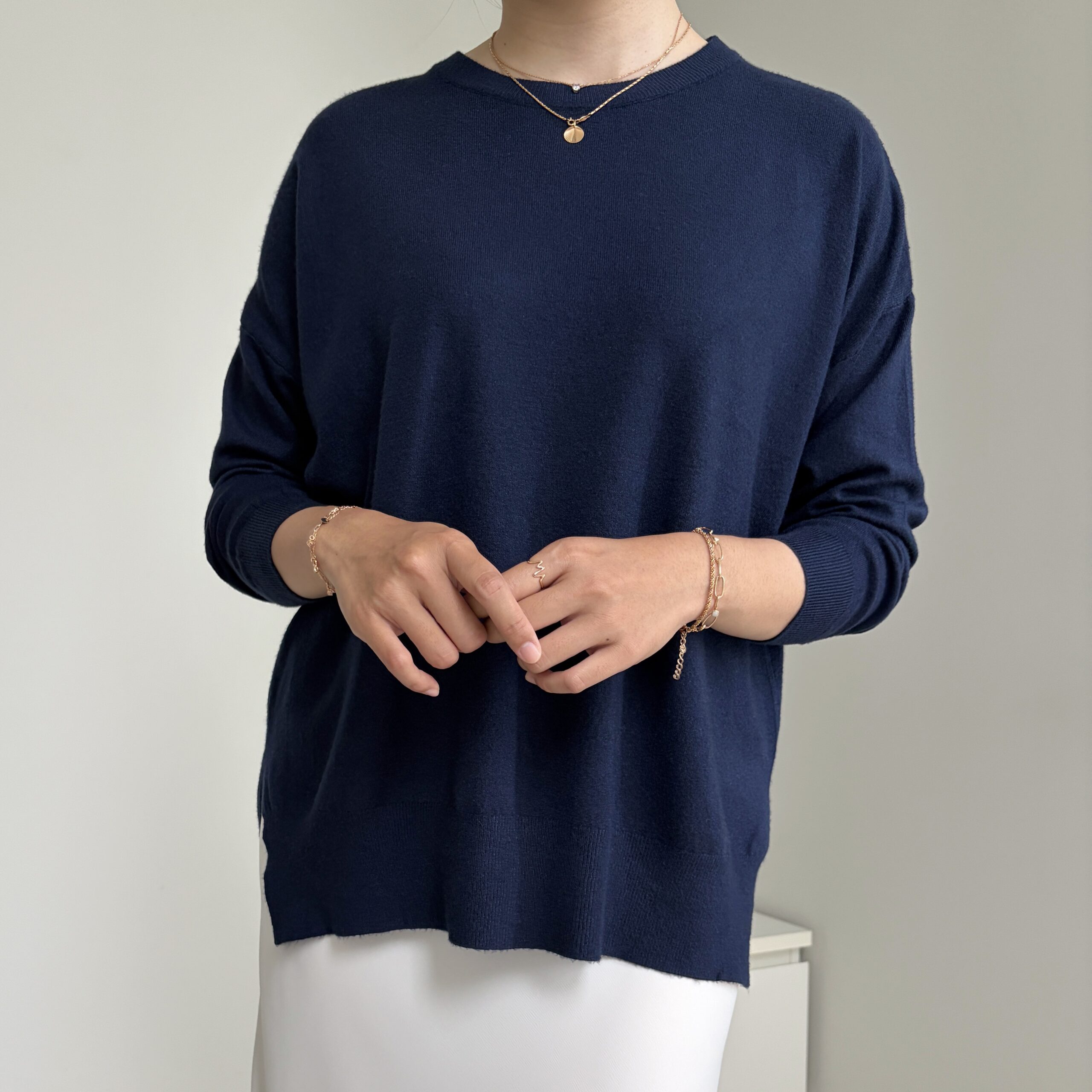 Atasan rajut dengan potongan kotak. Terdapat belahan pendek di sisi kanan dan kiri. Boxy Knittop tersedia dalam banyak pilihan warna.