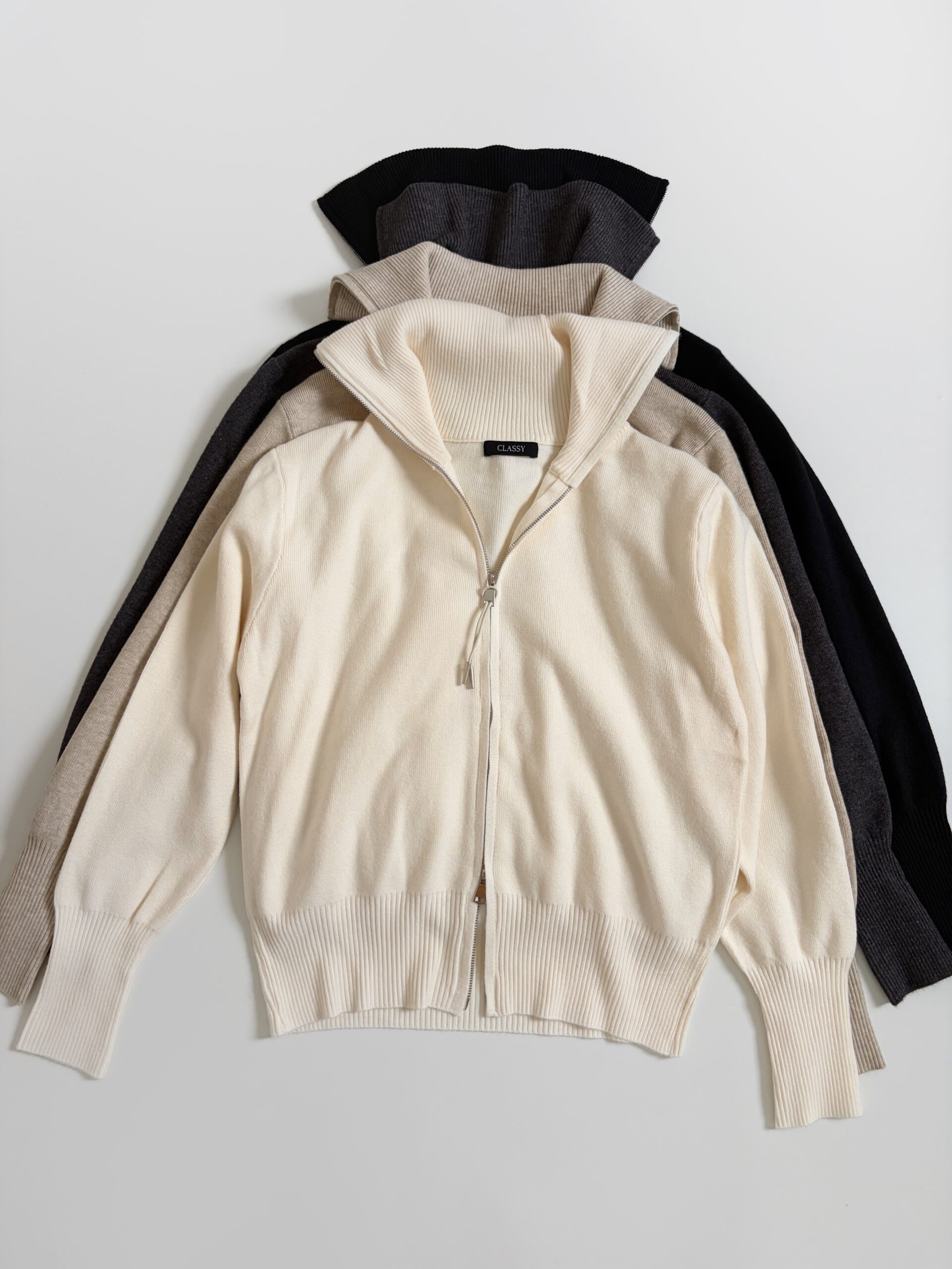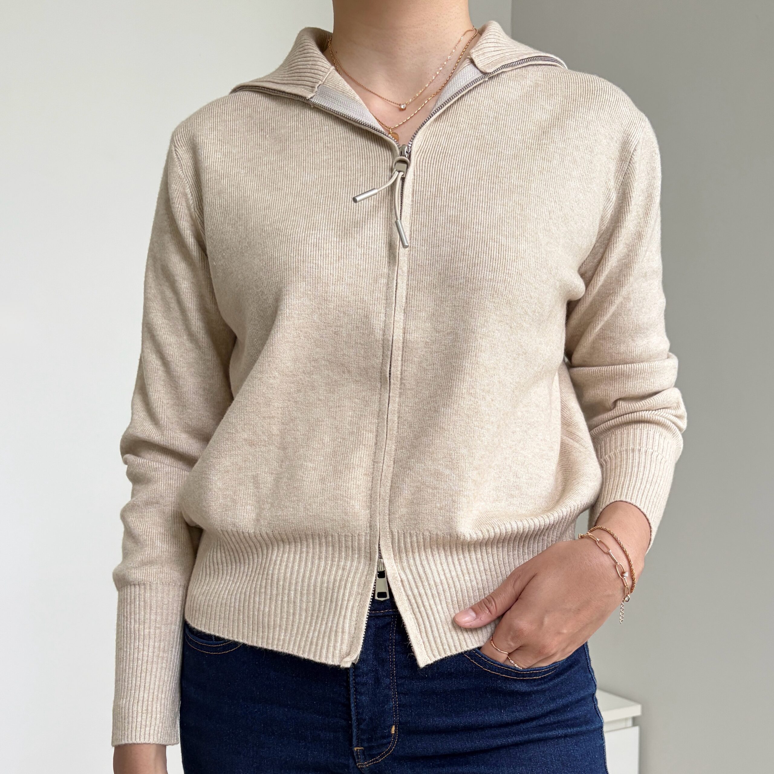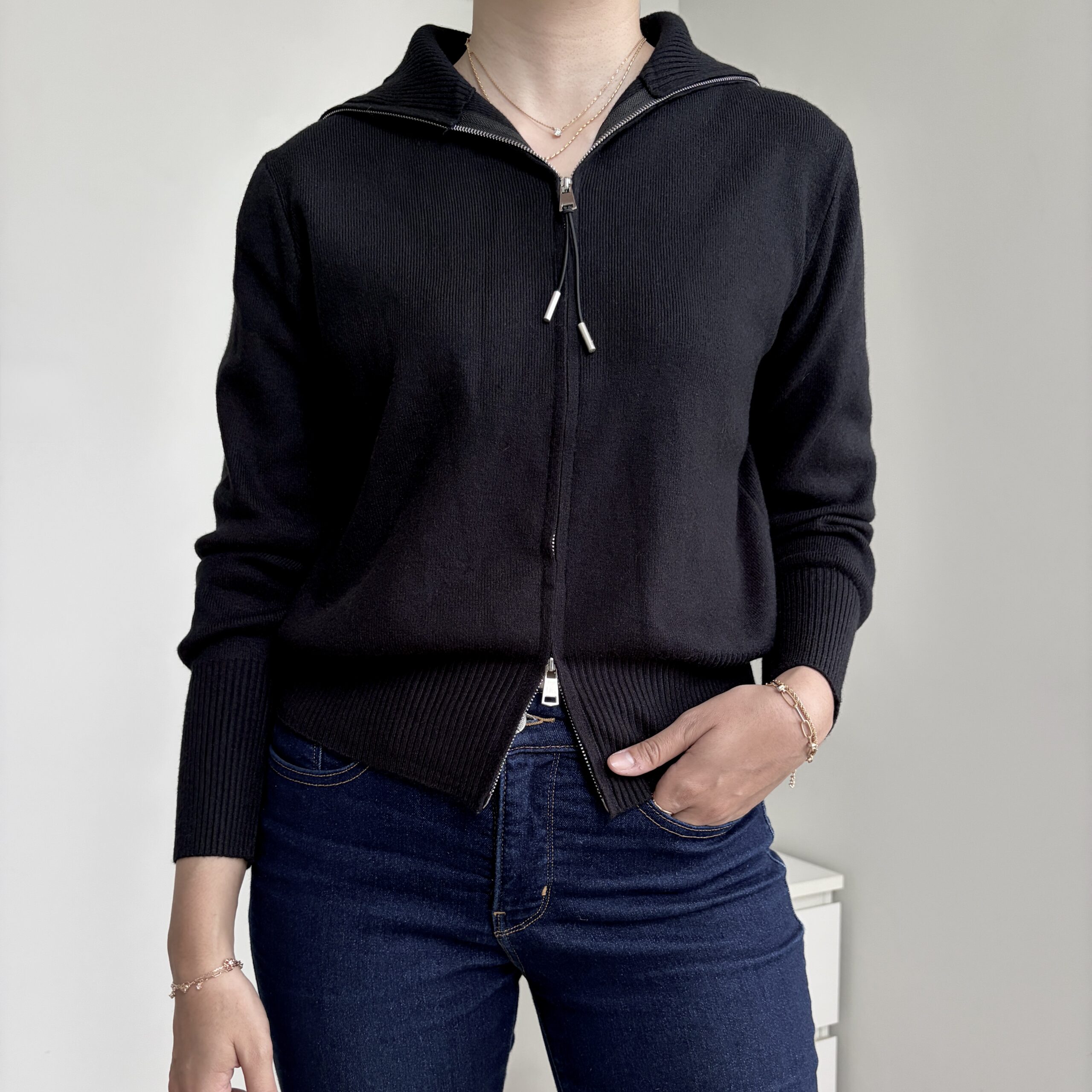 [ NEW IN ] Atasan rajut dengan double-zipper yang juga dapat berfungsi sebagai luaran/jaket. Tersedia dalam 4 pilihan warna; Black, Grey, Broken White, Créme.