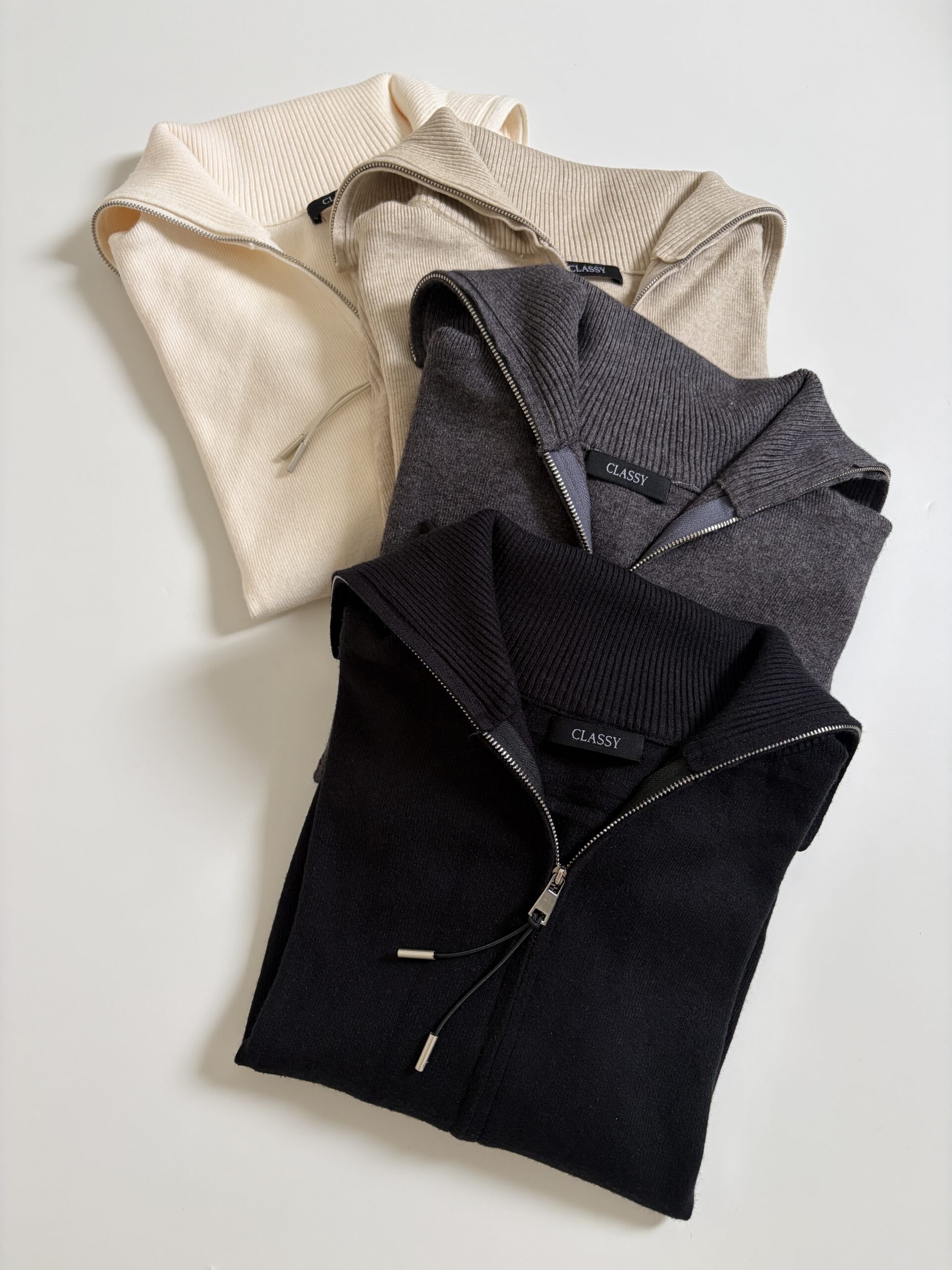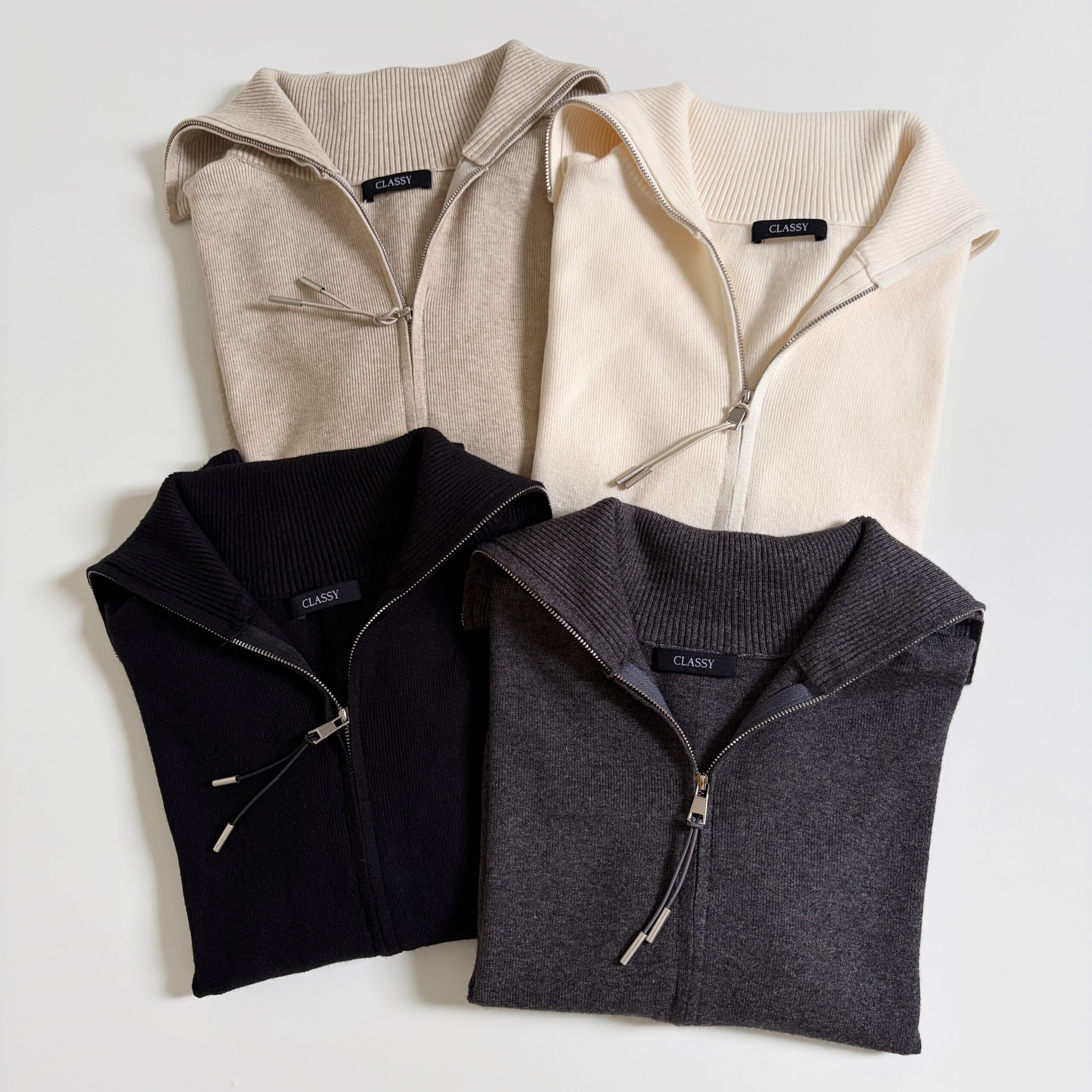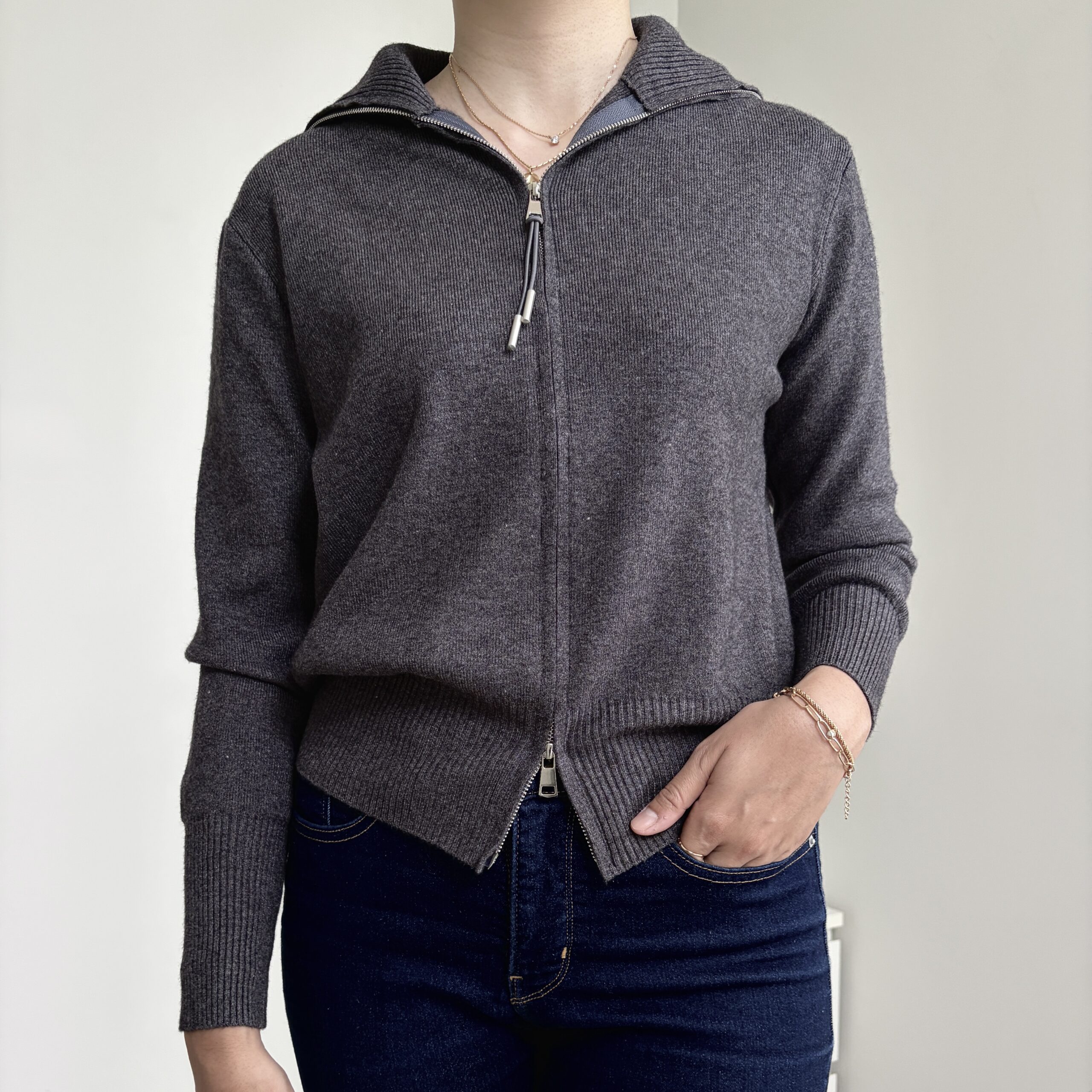 [ NEW IN ] Atasan rajut dengan double-zipper yang juga dapat berfungsi sebagai luaran/jaket. Tersedia dalam 4 pilihan warna; Black, Grey, Broken White, Créme.