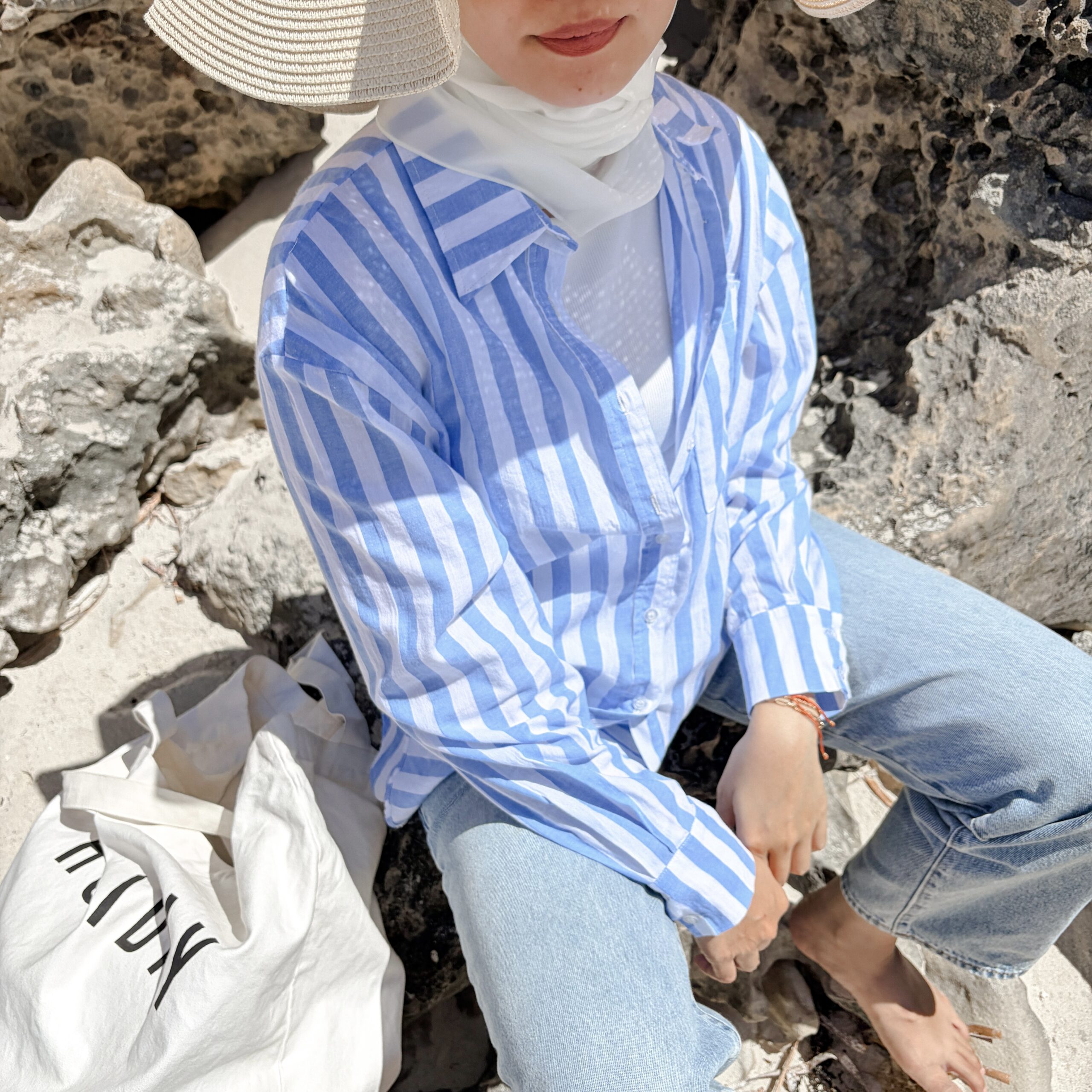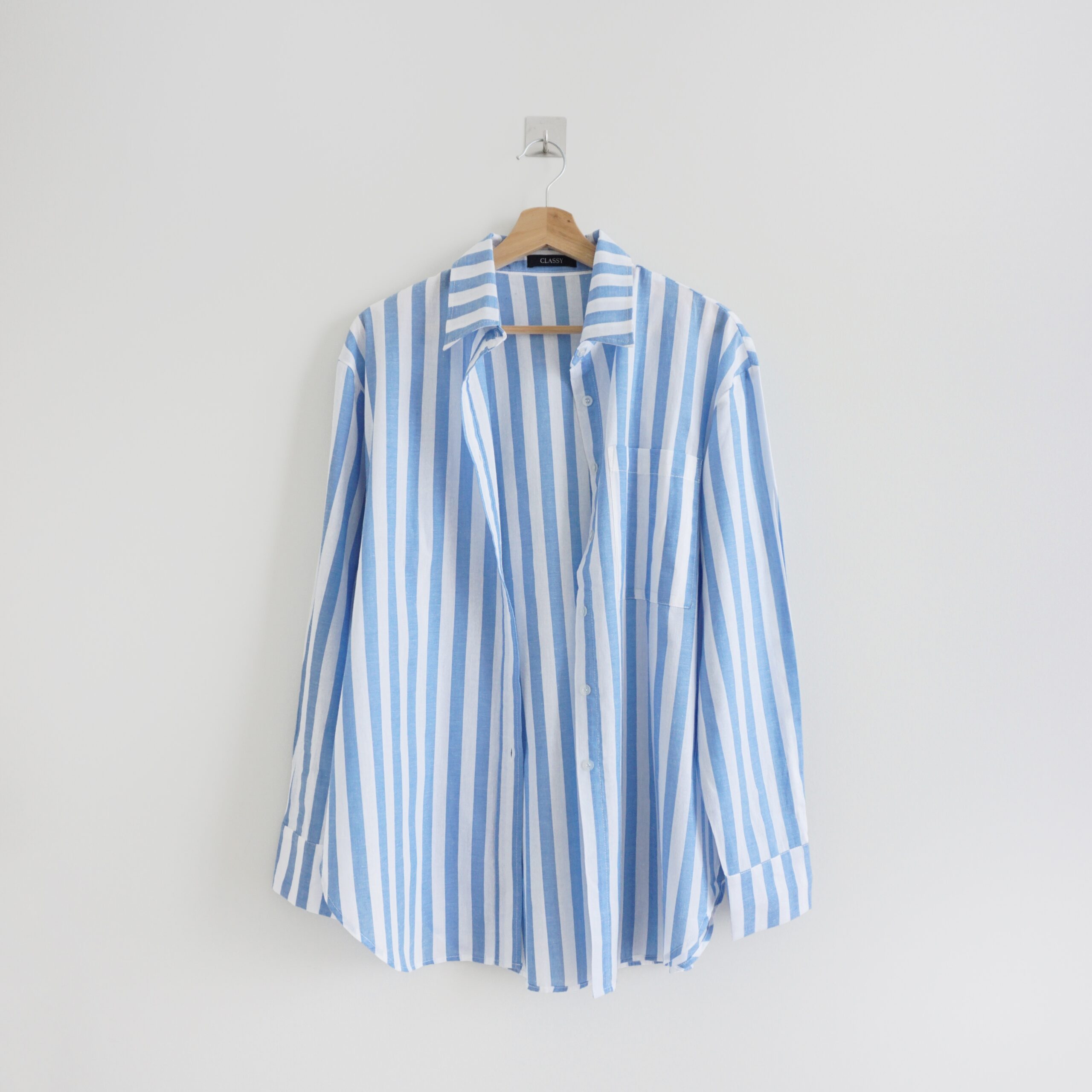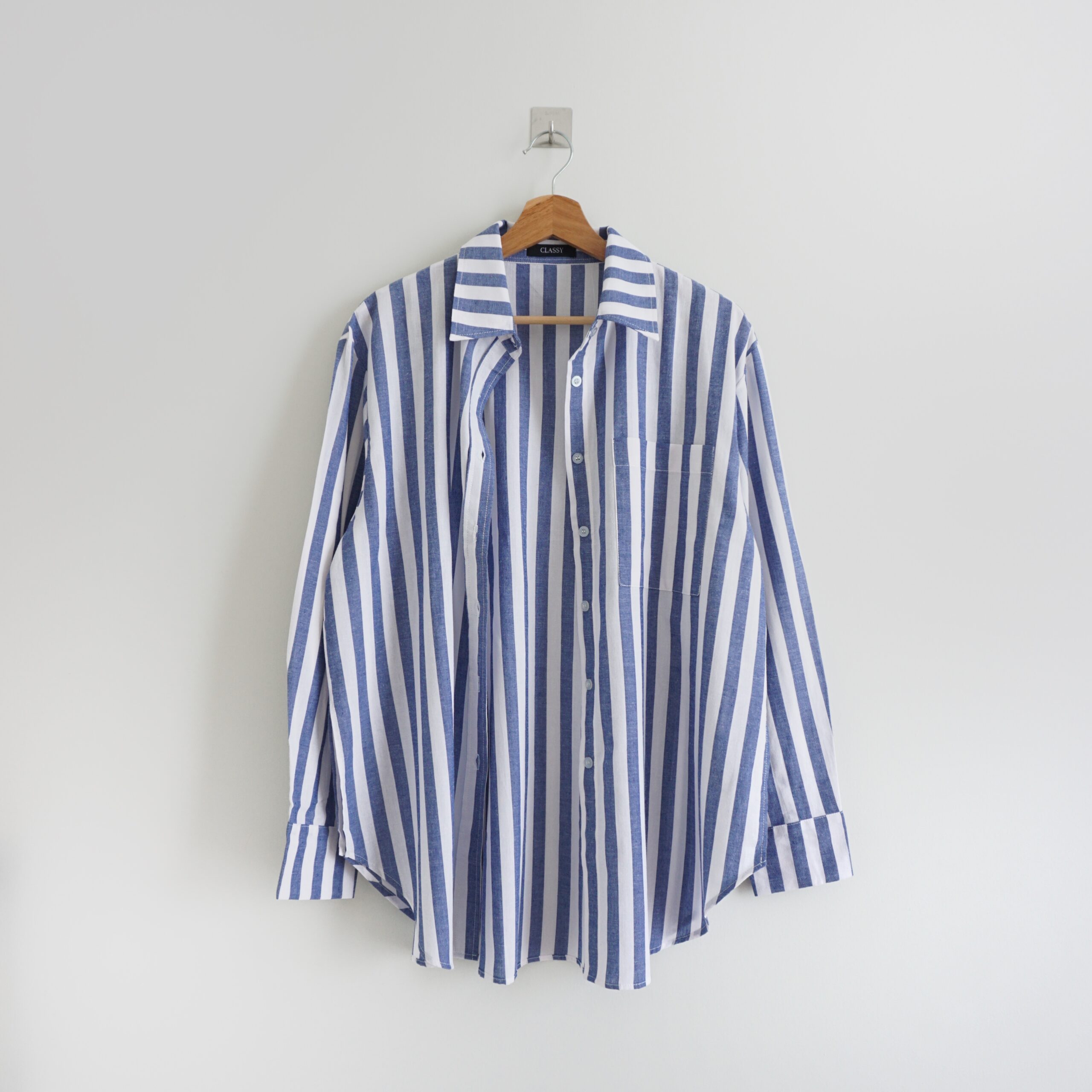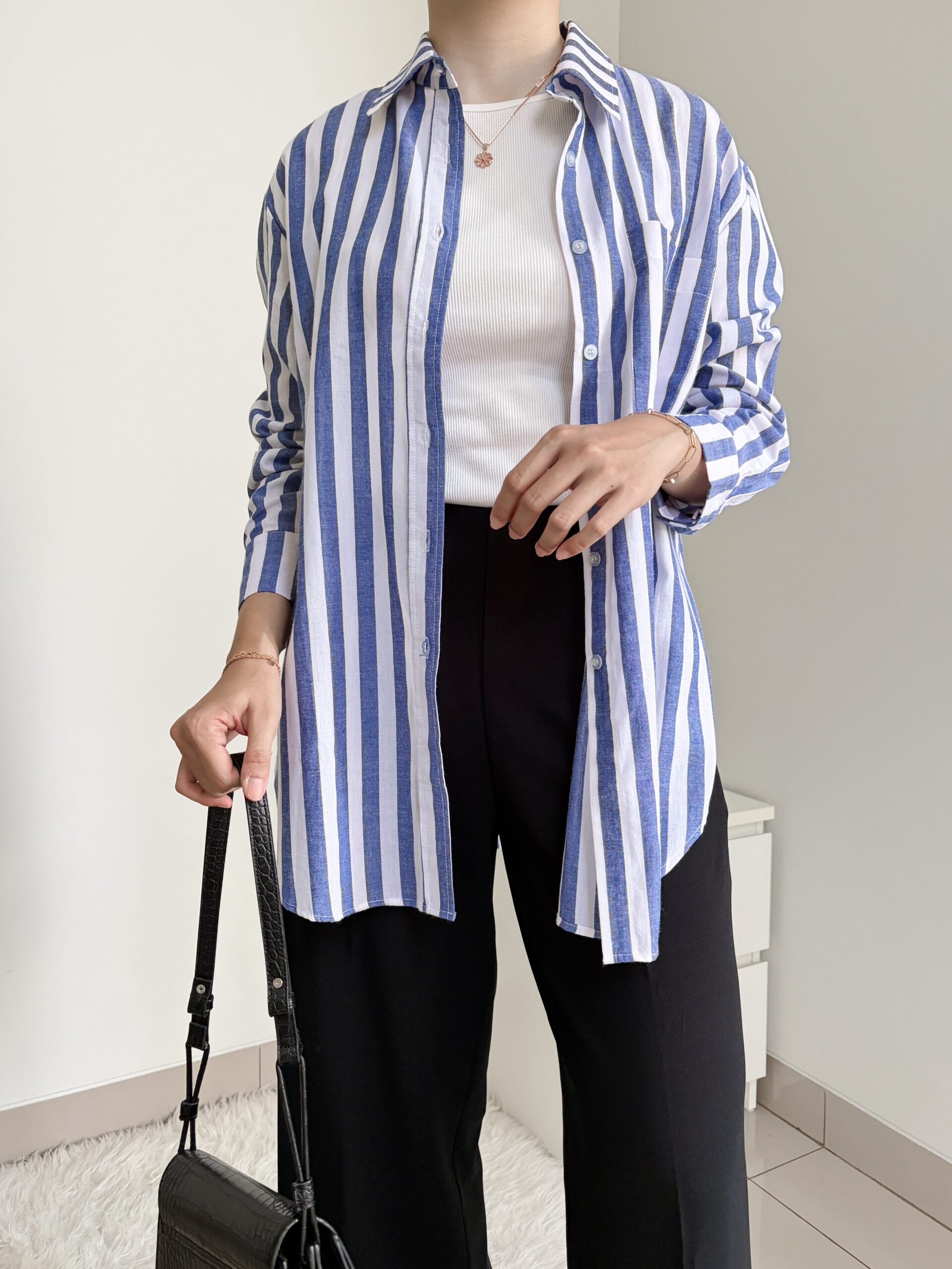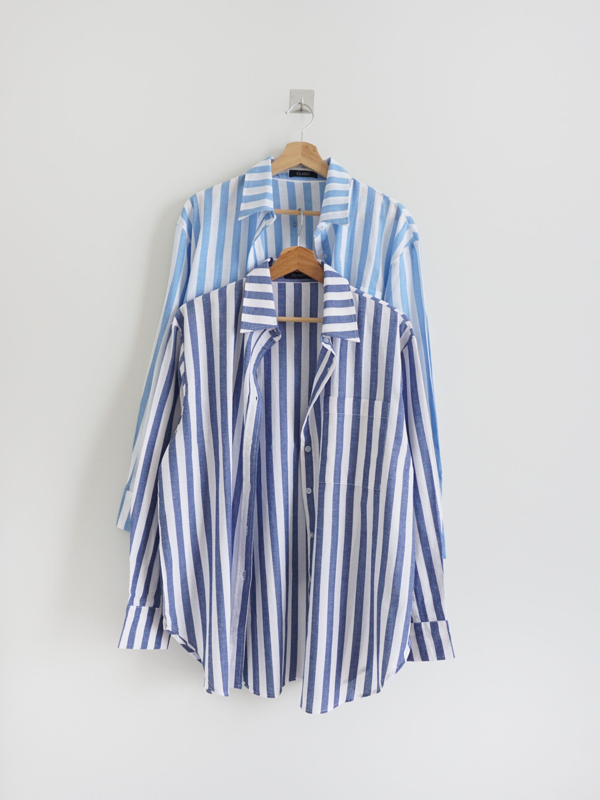 [ NEW IN ] Kemeja berbahan katun dengan motif salur besar. Cocok dipakai di cuaca tropis. Tersedia dua variasi warna, Light blue & Dark blue.